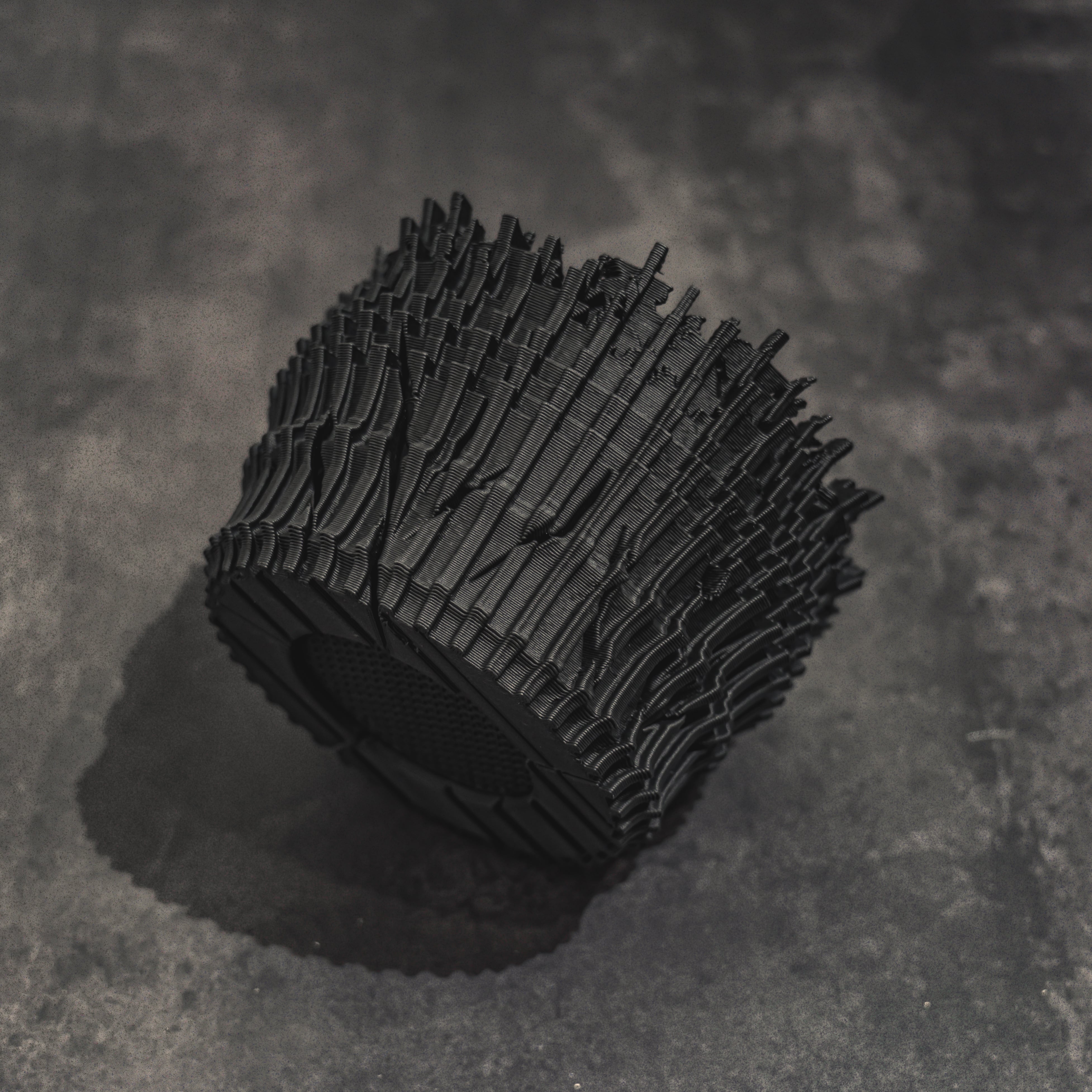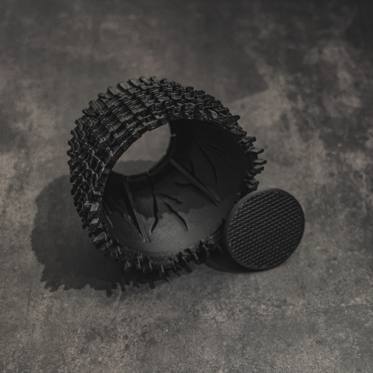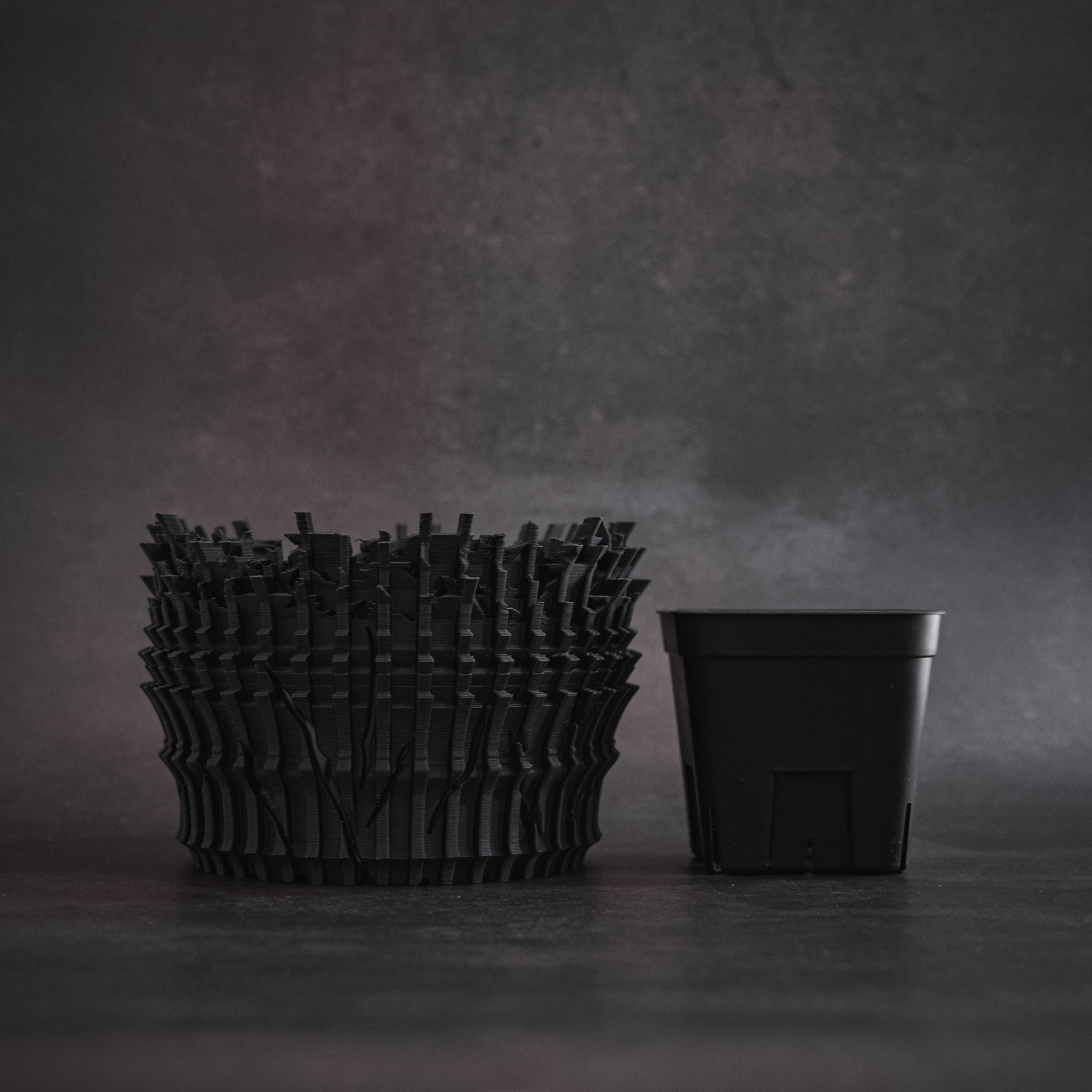陶器鉢のような不規則性と3Dプリンターならではの精密なディテールを融合。全面スリットとサークリング防止のリブを設け、視覚的な美しさと優れた機能性を実現しています。